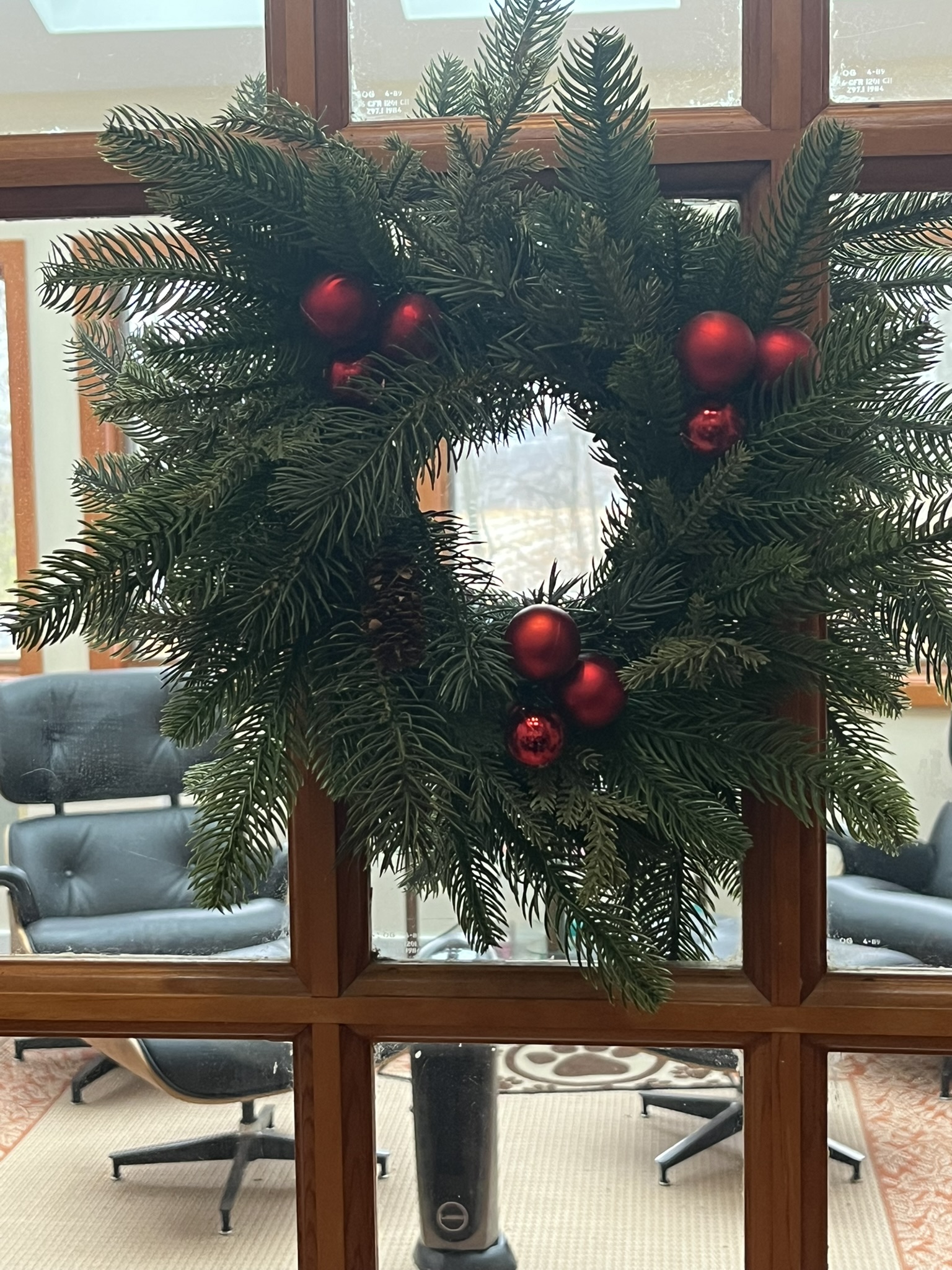I made the door wreath last year. I think it looks quite realistic. Click, then zoom in to see if you agree. This time, Marley is quite visible. |