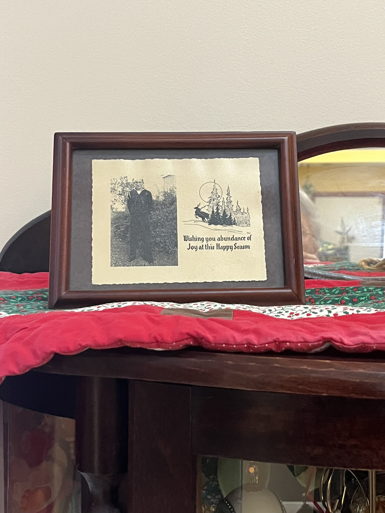 This was a card Lyles dad sent home to his parents the first Christmas he was away during WWII. In the 90s, a relative was going through papers, found it and sent it to us. His dad had been gone about 10 years when we received it. Imagine the shock of a Christmas card from the past like that! |