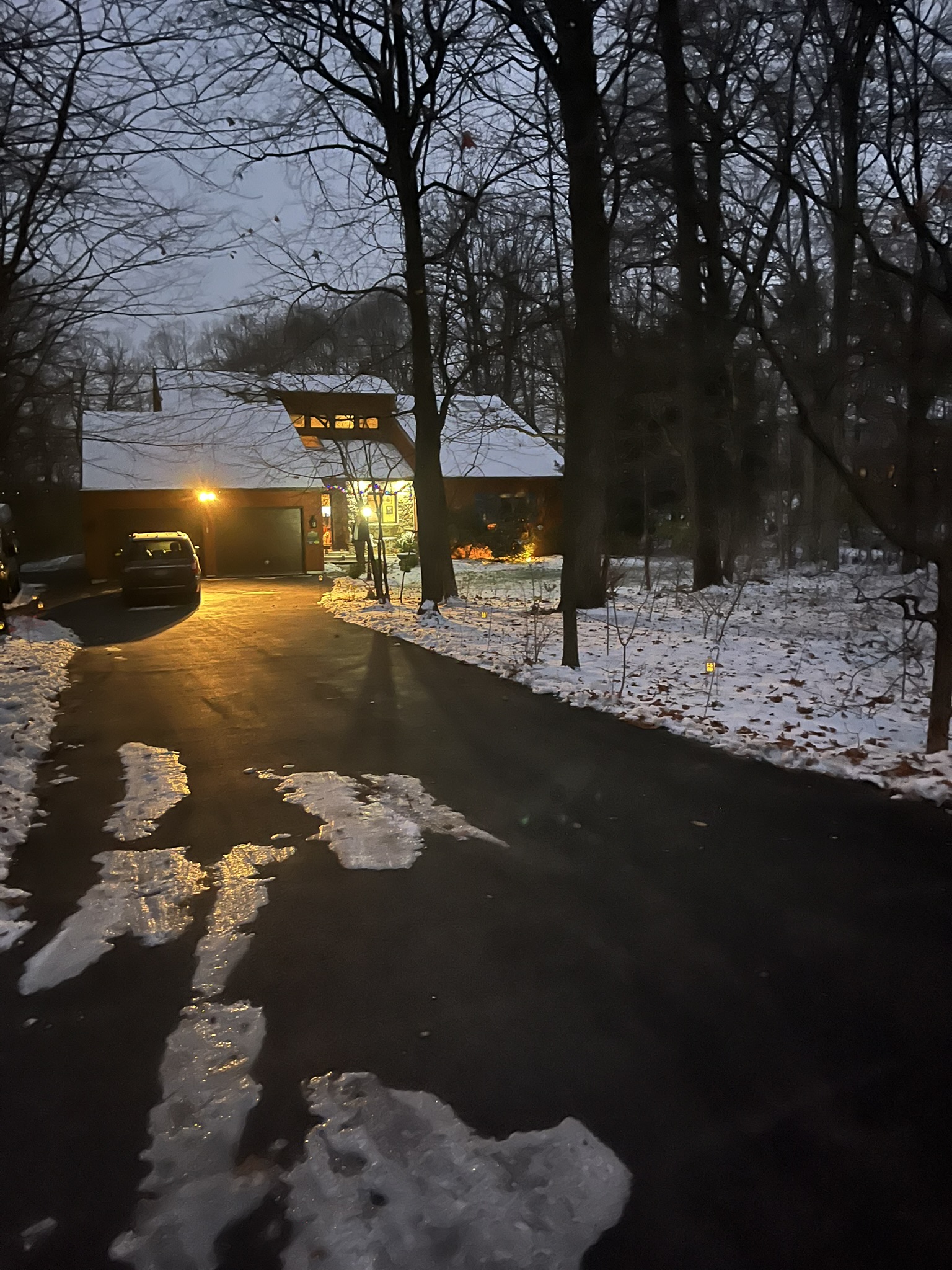 I have little tin lanterns with a battery powered voltive candle lining the drive. They are more visible in person. |
