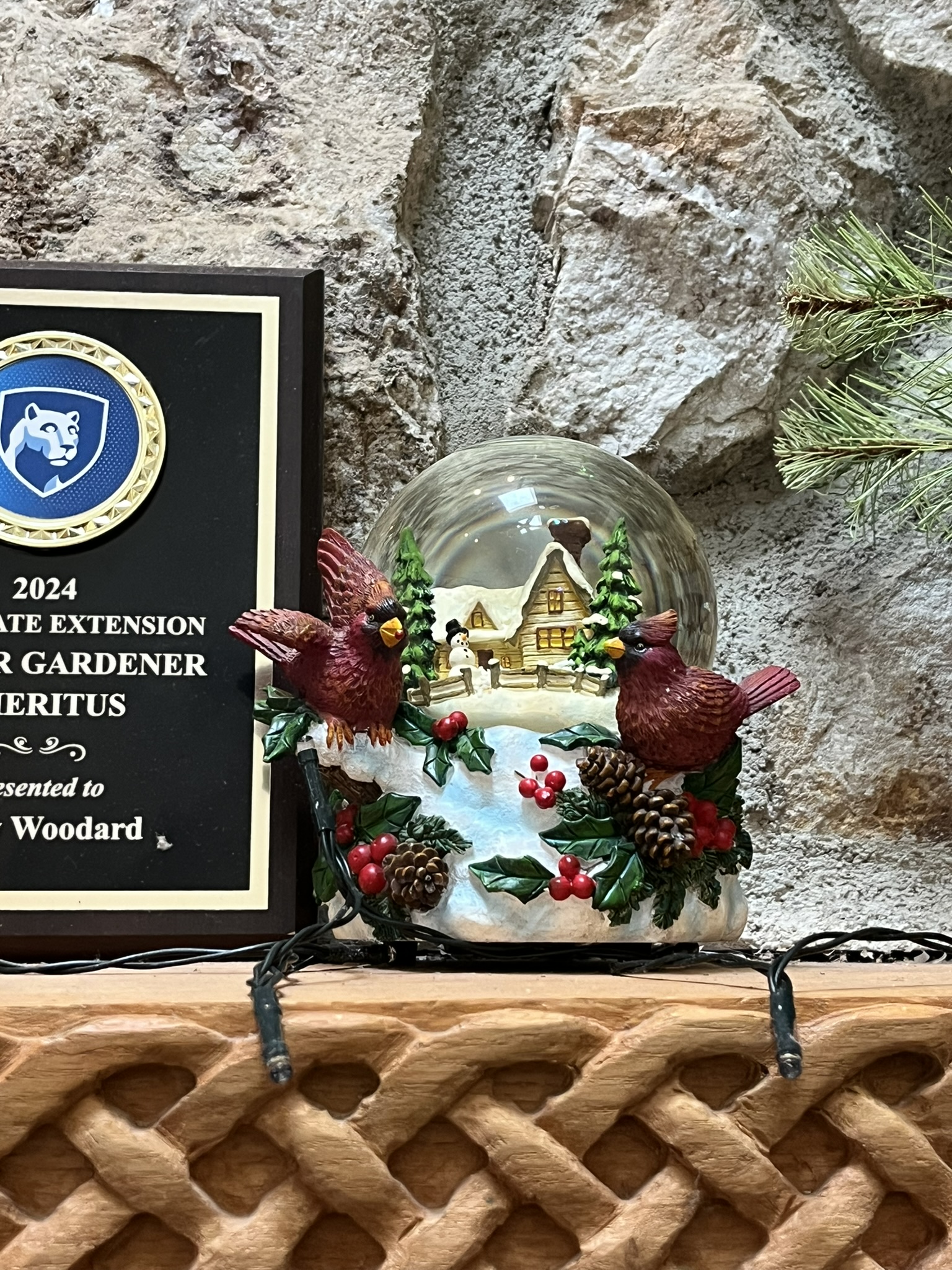 A Christmas homestead setting snowglobe, a shout out to the Norman Rockwell personification of Christmas. |
